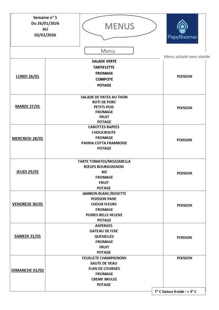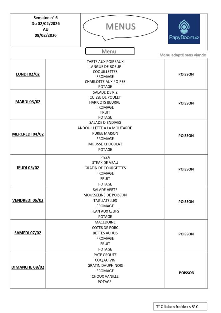 Découvrez le menu de la semaine !